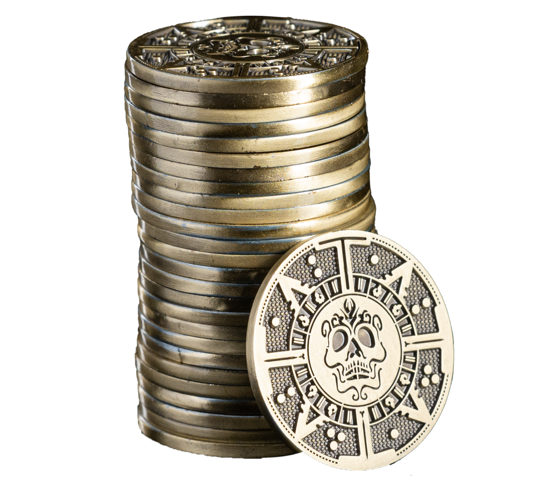 Made from a special alloy designed for durability and that satisfying "clink" noise for that real pirate gold feel.