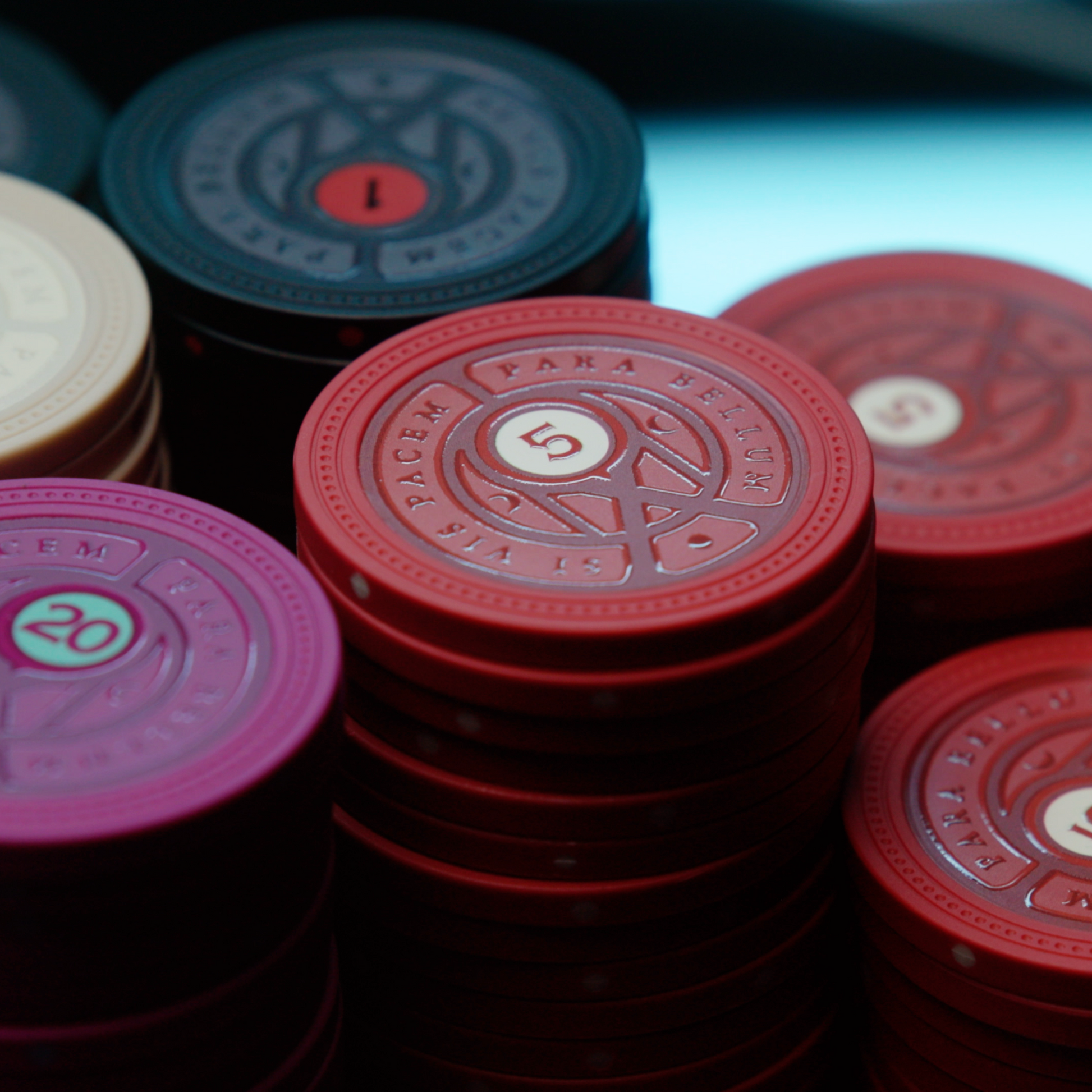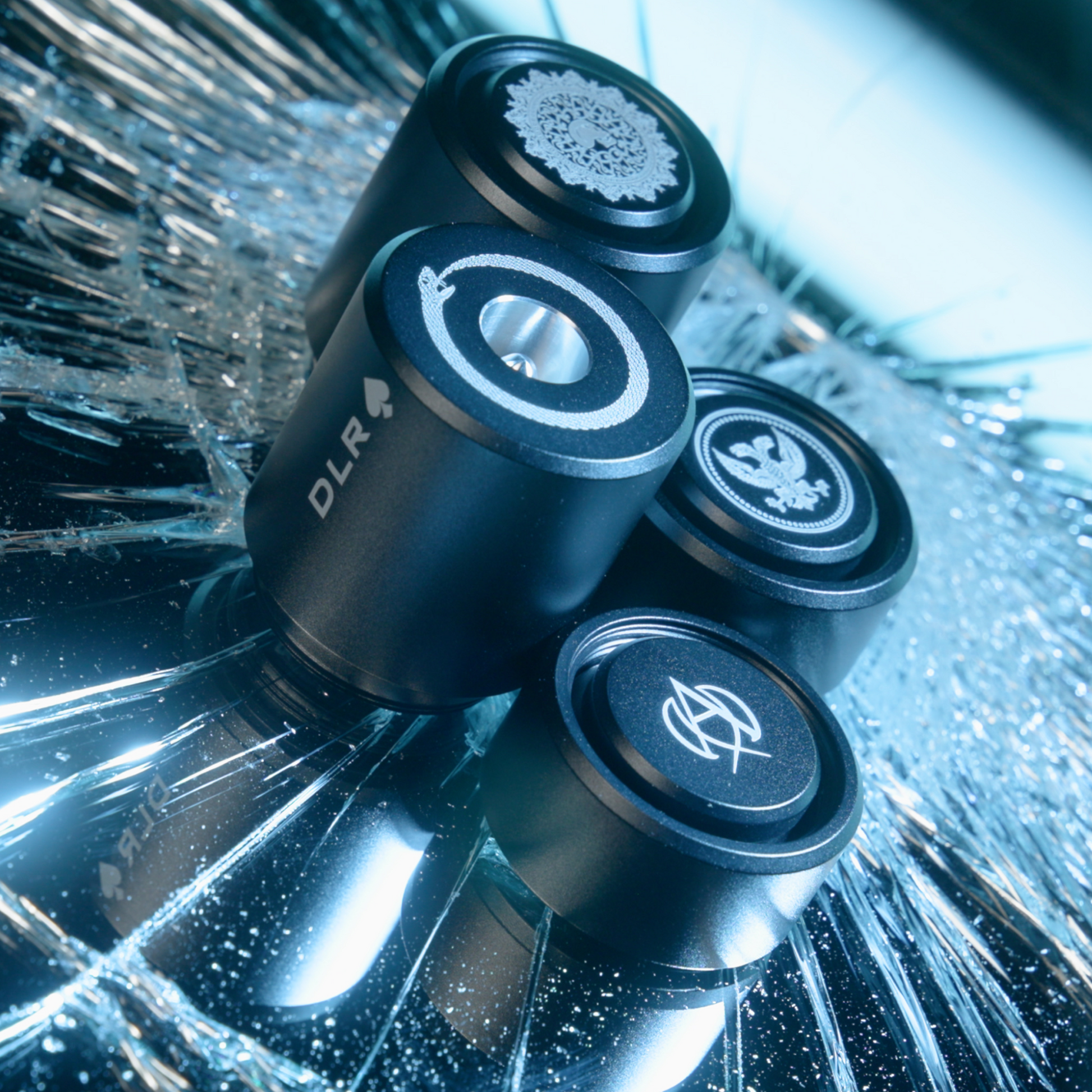 - Signature Dealer Stack – Four precision-machined aluminum pieces: Small Blind, Big Blind, and the 2-part Dealer Token. Assembles into a unified totem when the stakes demand it.