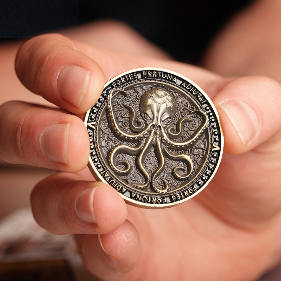 Kraken Dealer Chip – 40g chip, engraved with "fortune favors the bold," bringing a unique collector's item to your set.